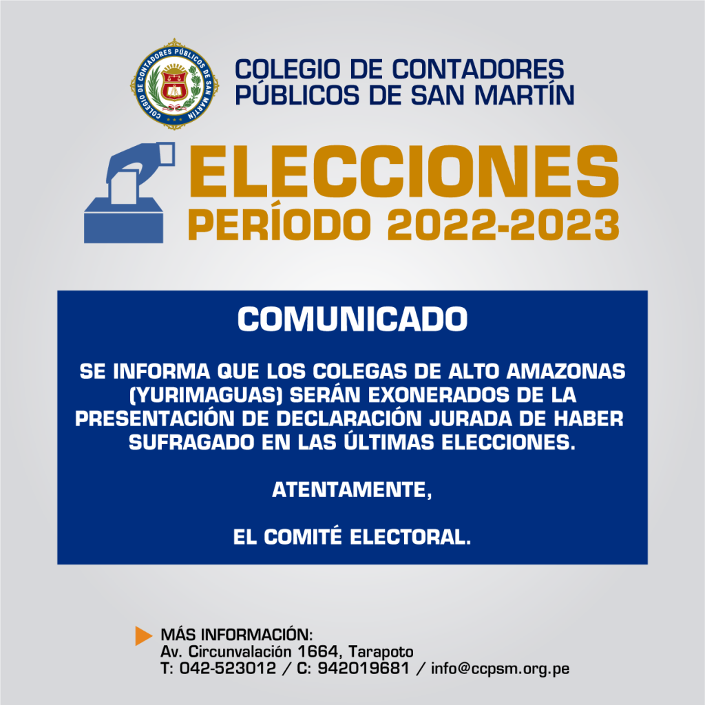 Se informa que los colegas de alto amazonas (Yurimaguas) serán exonerados de la presentación de declaración jurada de haber sufragado en las últimas elecciones.