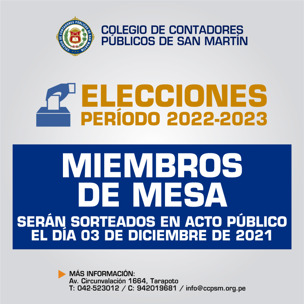“ARTÍCULO 28°. – El sorteo para los Miembros de Mesa se efectuará en acto público, el día viernes 03 de diciembre del 2021 a las 17:45 horas, entre todos los Miembros hábiles a la fecha del acto electoral…”