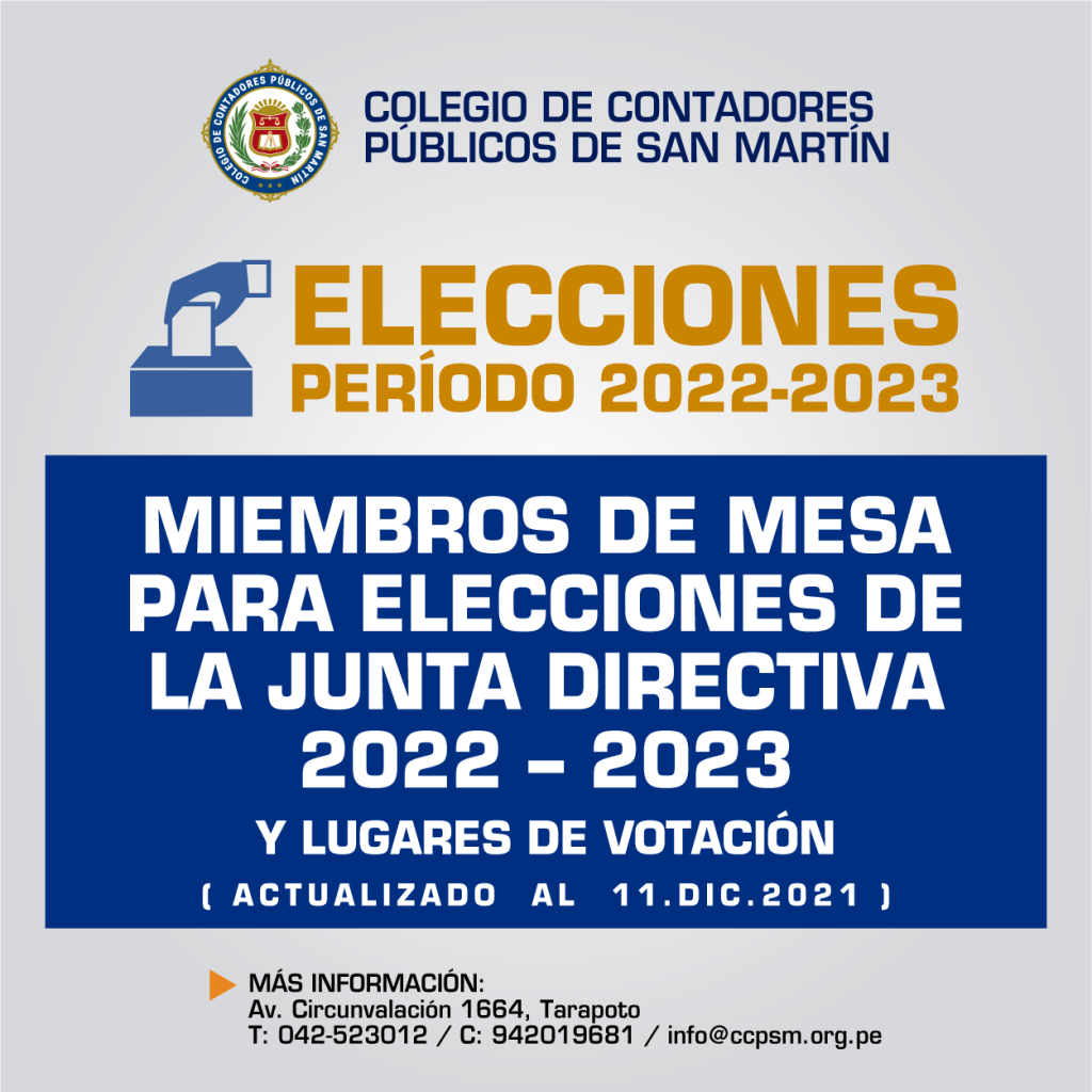 Estimados Miembros de la Orden: el Comité Electoral cumple con informar sobre los MIEMBROS DE MESA y LUGARES DE VOTACIÓN (ACTUALIZADO AL 11.DIC.2021)